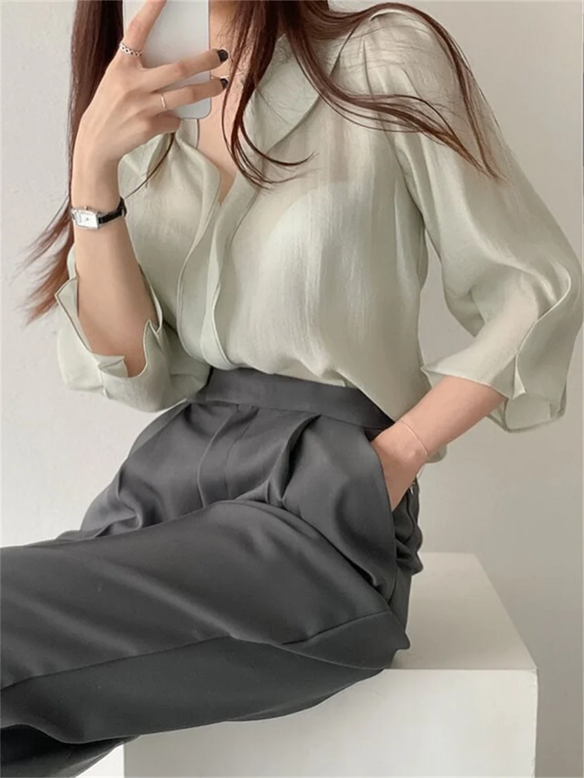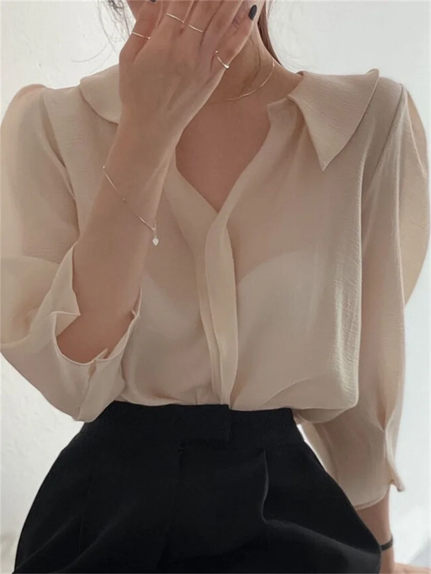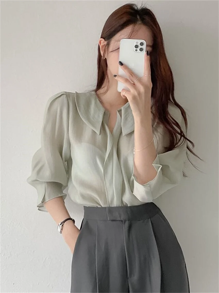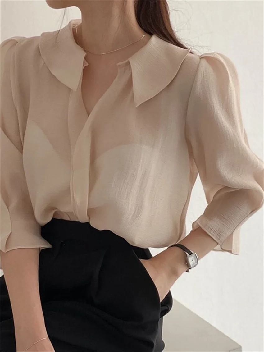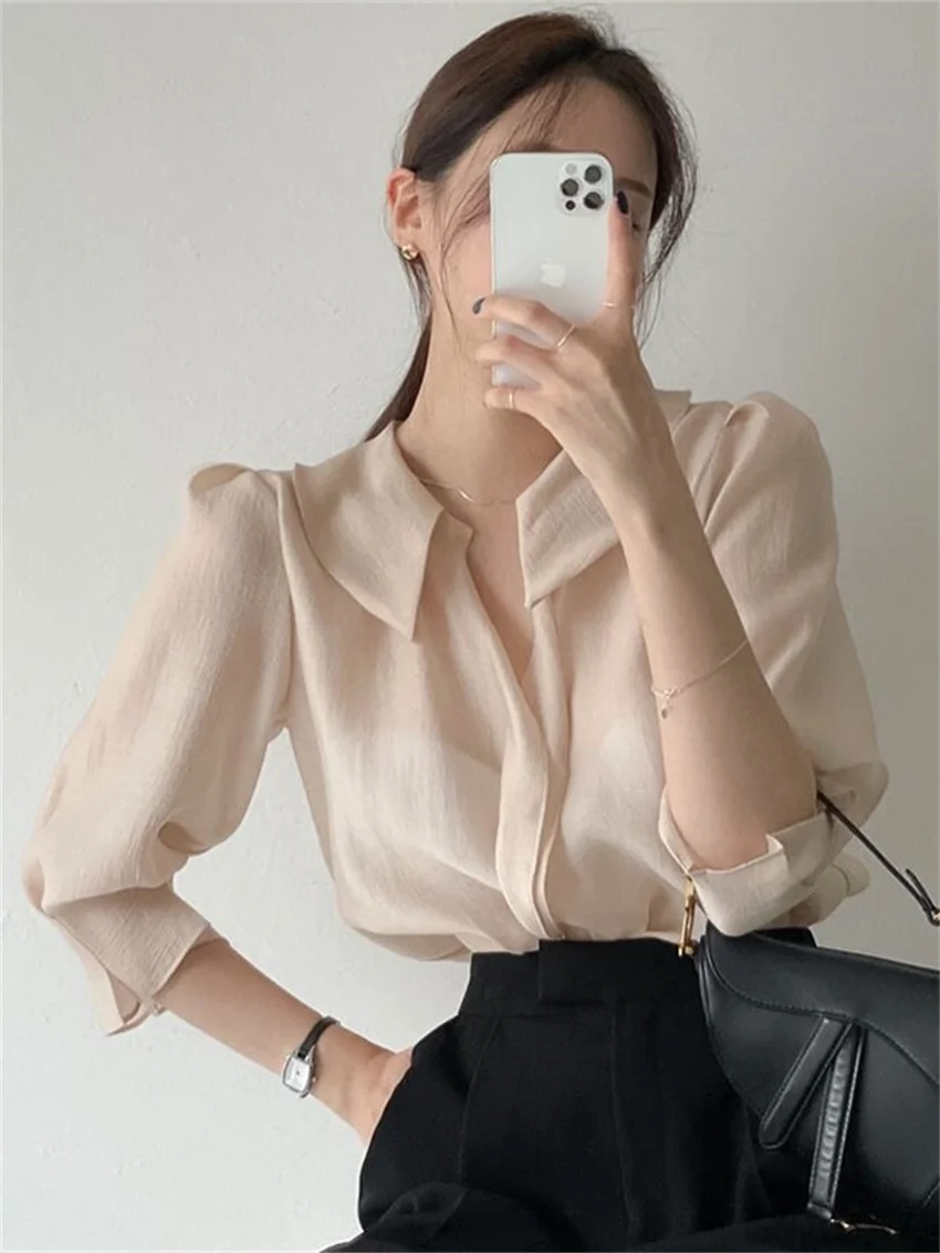 HziriP Chic Summer Office Lady Shirts New Casual Solid Elegant 2022 Hot OL Work Wear Gentle Outwear All Match Loose Blusas