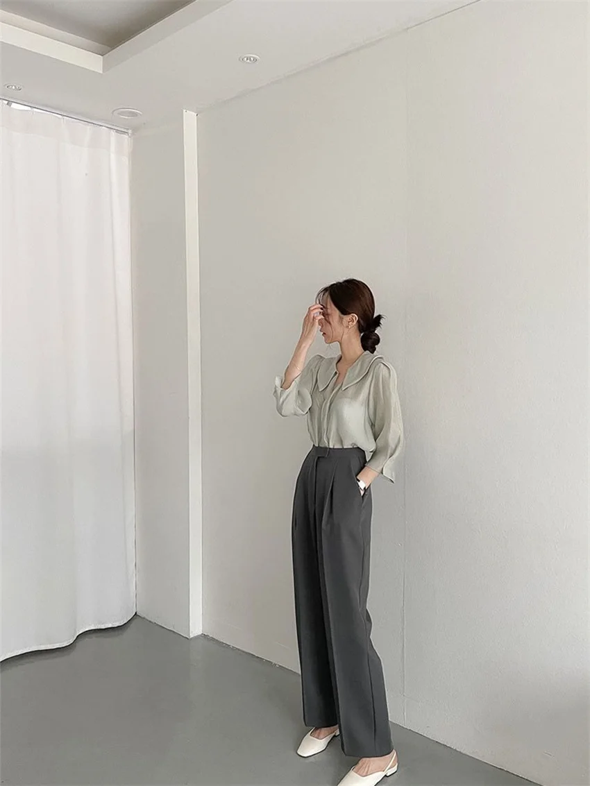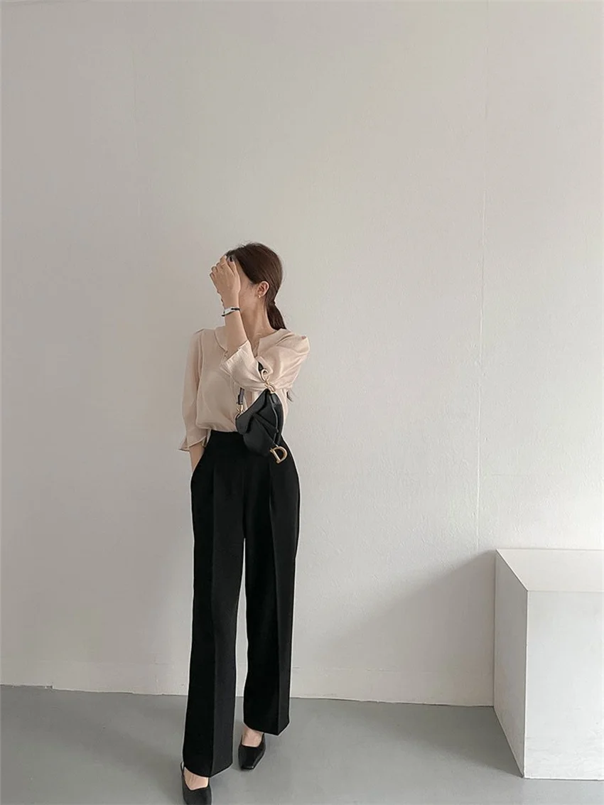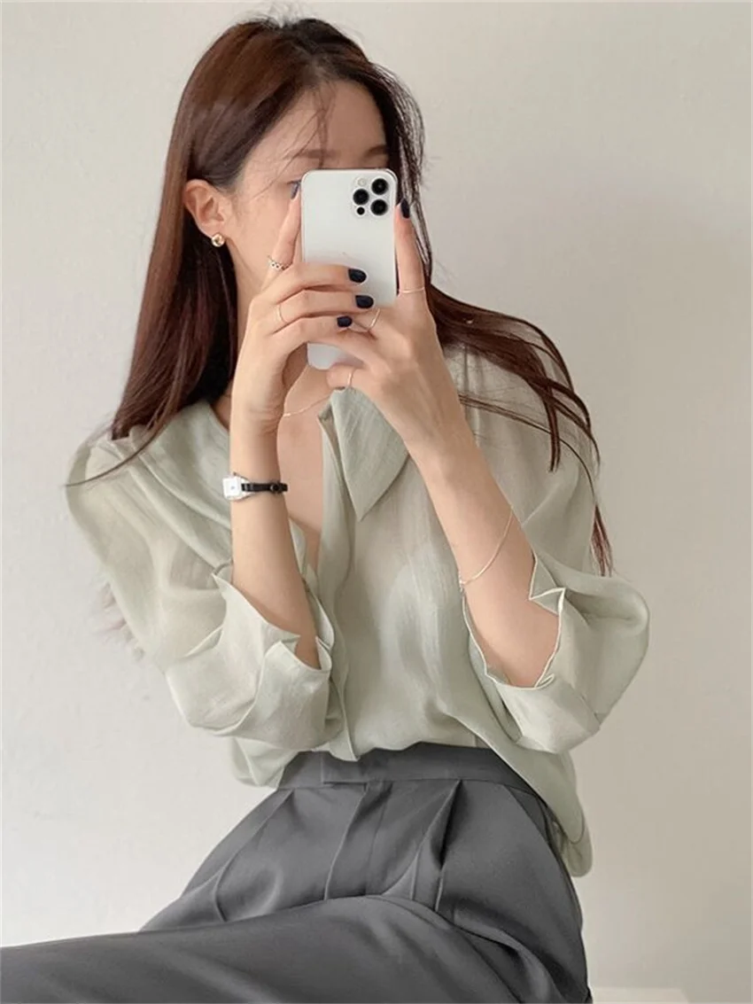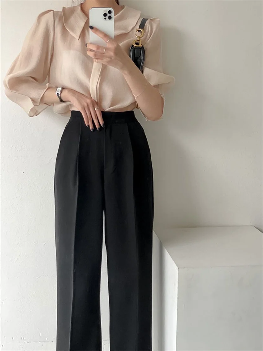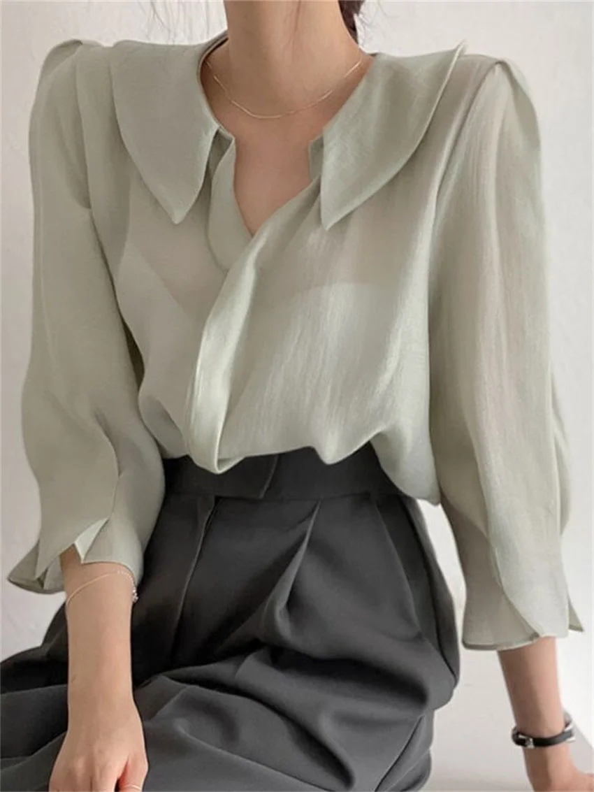 HziriP Chic Summer Office Lady Shirts New Casual Solid Elegant 2022 Hot OL Work Wear Gentle Outwear All Match Loose Blusas