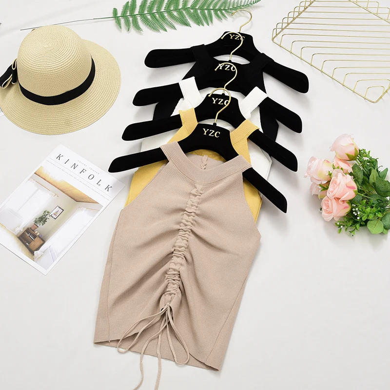Sexy V Neck Drawstring Ruched Crop Top Women 2020 Summer High Stretch Knit Sleeveless Camisole Tops Streetwear Slim Tank Tops